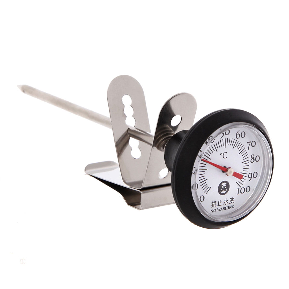 Этот аналоговый термометр оснащён чётким циферблатом по шкале Цельсия и съёмной металлической клипсой, которая легко крепится к любому молочному питчеру или чайнику, фиксируя прибор в нужном положении при вспенивании молока или нагреве воды.