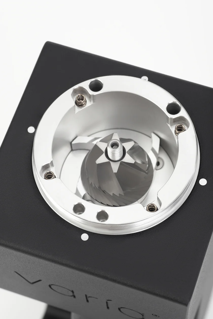 Varia VS3 — это компактная домашняя кофемолка премиум-класса с технологией Single Dose (помол одной порции) и Zero Retention (нулевой остаток). Благодаря наклону корпуса под углом 76.5°, она обеспечивает идеальное прохождение зерна без задержек внутри механизма.