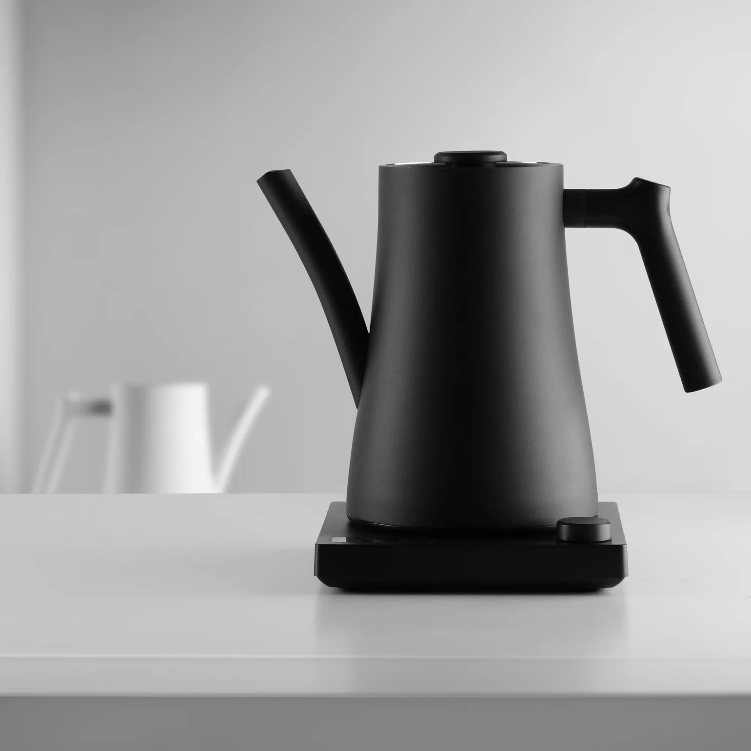 Ключевая инновация — внутренний ограничитель потока (Flow Control Restrictor). Это инженерное решение позволяет регулировать выдачу воды минимальным движением кисти. Чайник демонстрирует уникальную универсальность: он способен обеспечить высокий поток для быстрого заполнения чашек при каппинге или заваривании чая, и в то же время позволяет выполнять сверхделикатный, контролируемый pour-over. Такой контроль превращает чайник в гибкий инструмент, где физическая точность дополняется интеллектуальным управлением.