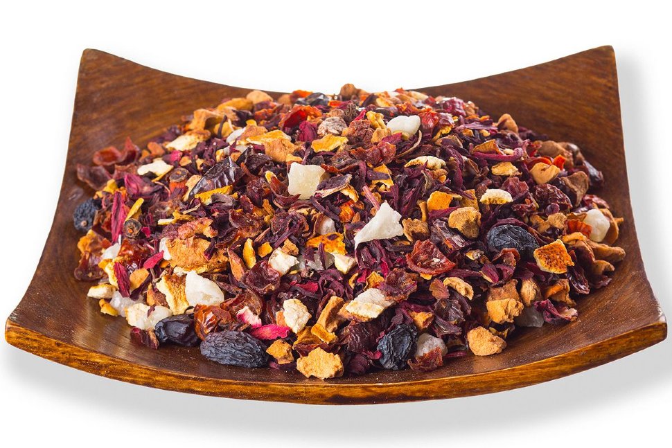 Яркий фруктово-ягодный купаж с лепестками роз и кусочками папайи. Универсальный чай для кофейни или ресторана, который одинаково хорош в горячем и холодном виде.
