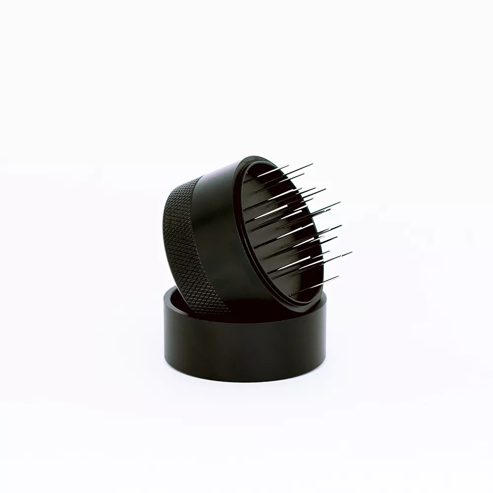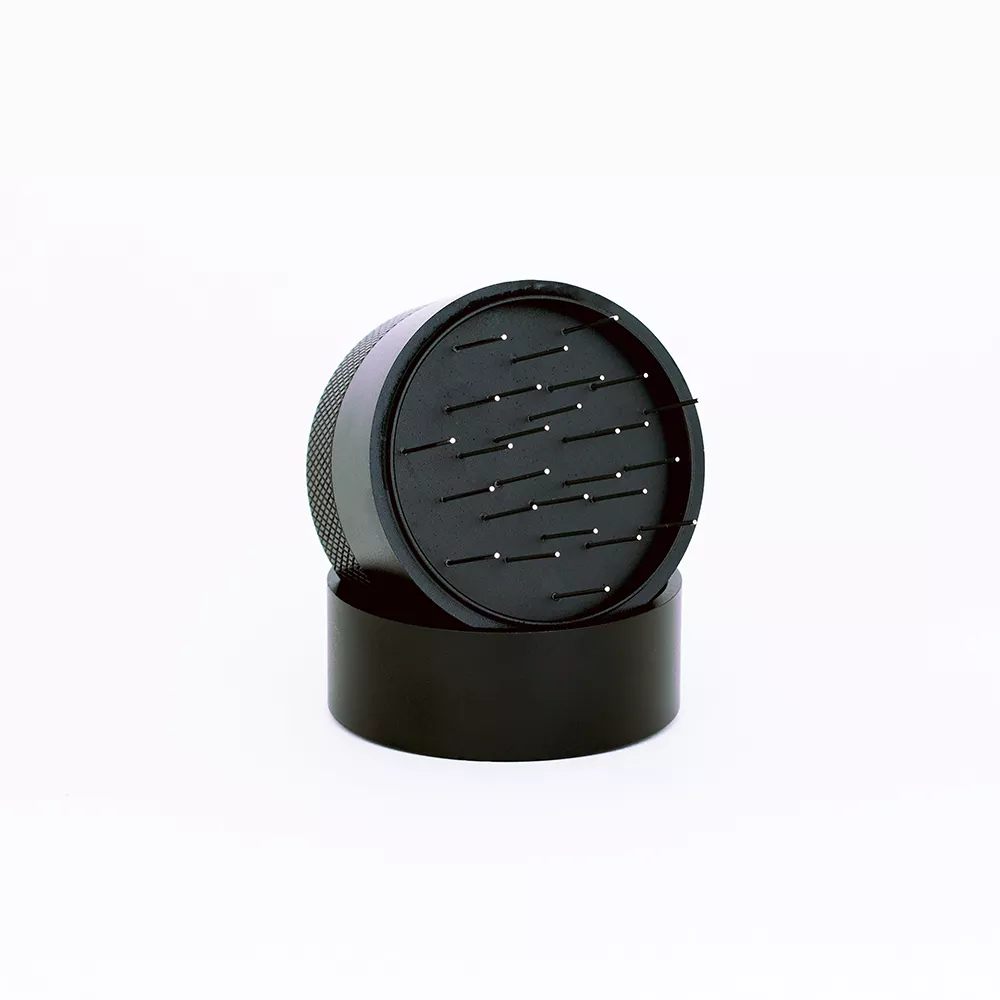 Игольчатая конструкция AnyBar D58 разрыхляет молотый кофе по всей глубине корзины, разрушает комки и выравнивает плотность слоя перед темперовкой. В результате формируется однородная структура кофейной таблетки, что обеспечивает равномерную экстракцию.