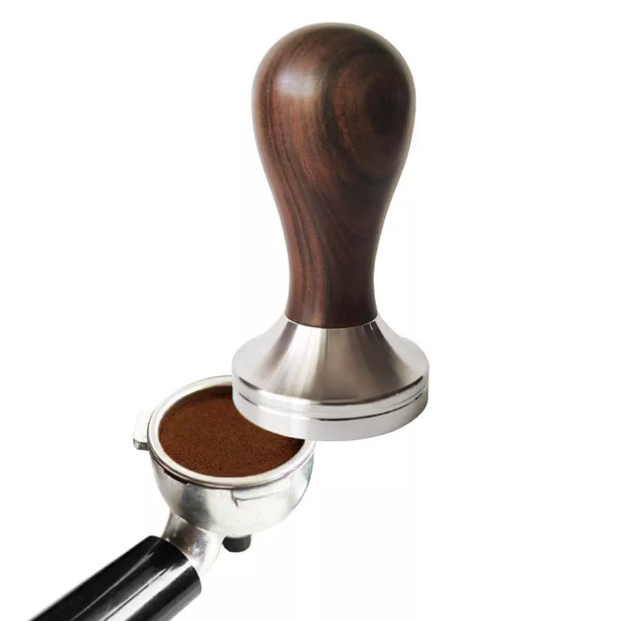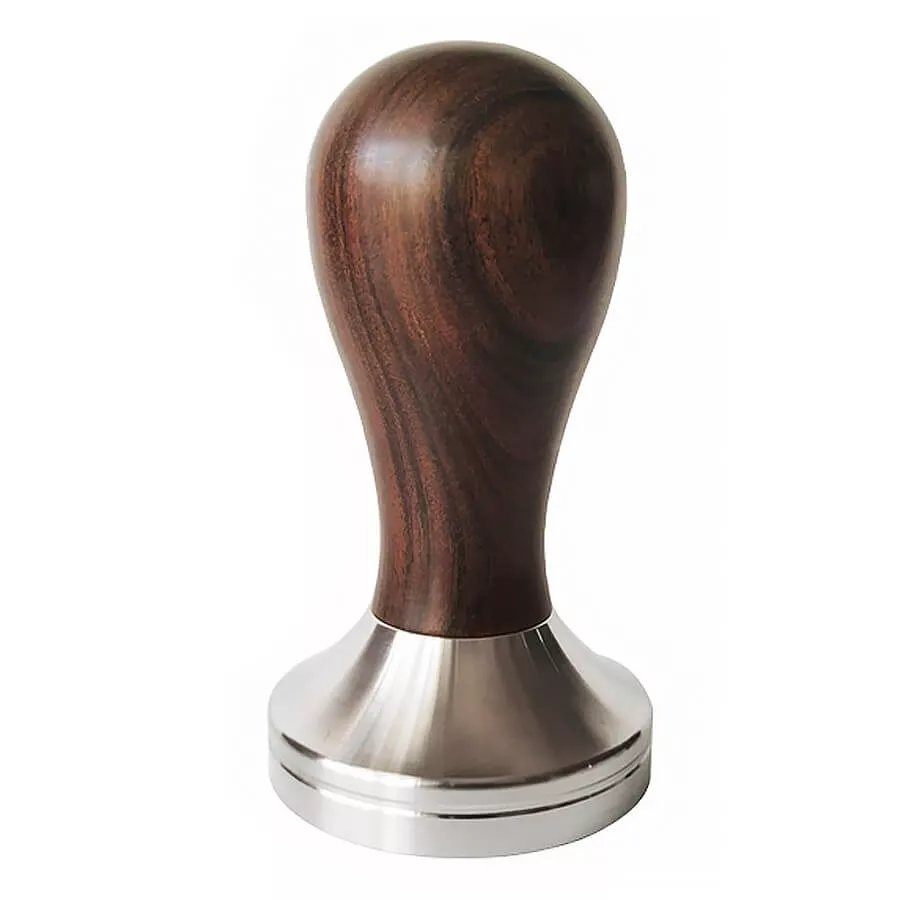 Темная деревянная ручка придает инструменту премиальный внешний вид и гармонично сочетается с классическими эспрессо-машинами и деревянными аксессуарами на баре.