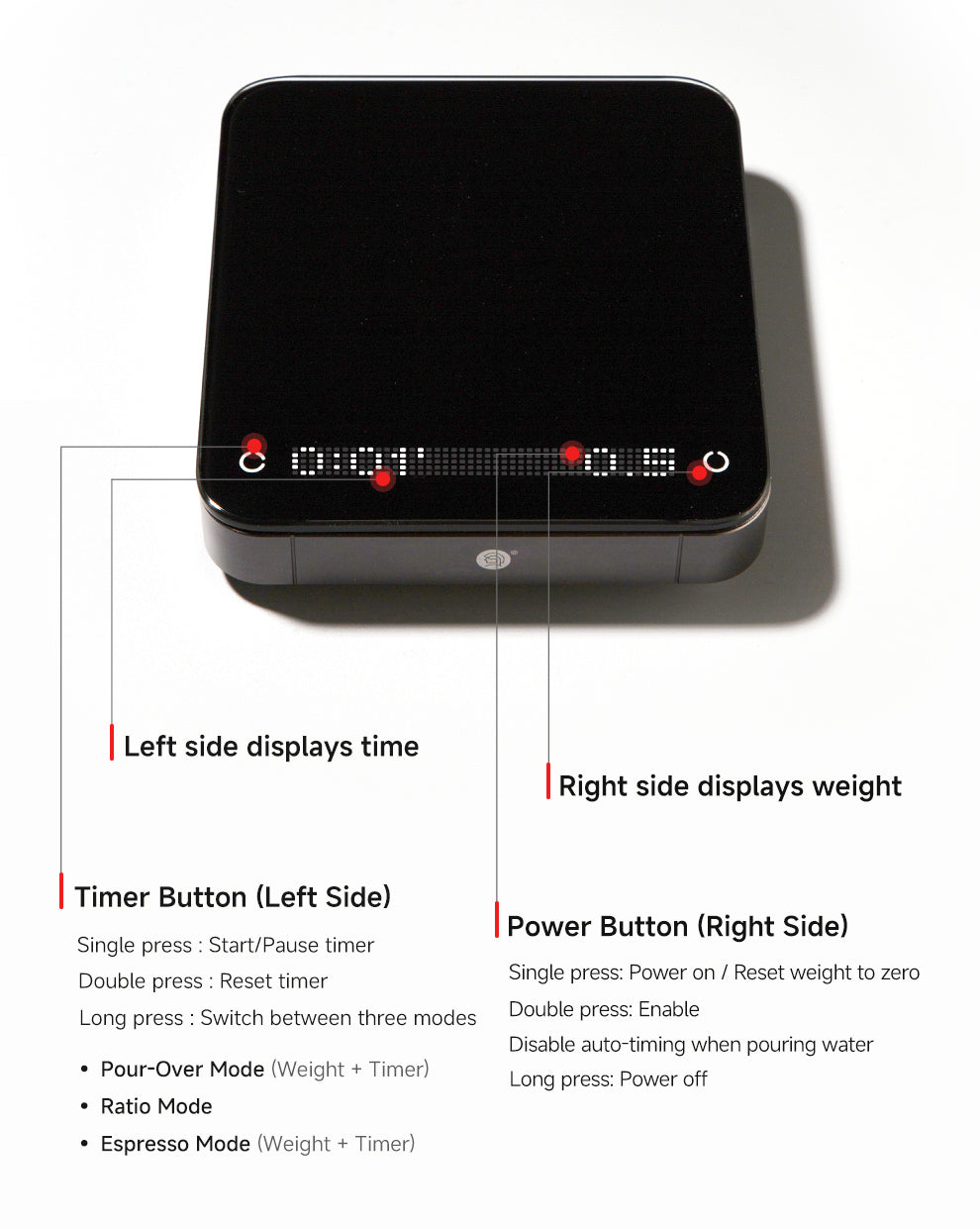 Автоматический запуск таймера через гравитационный сенсор при начале пролива. Подходит для V60, Origami, Kalita.