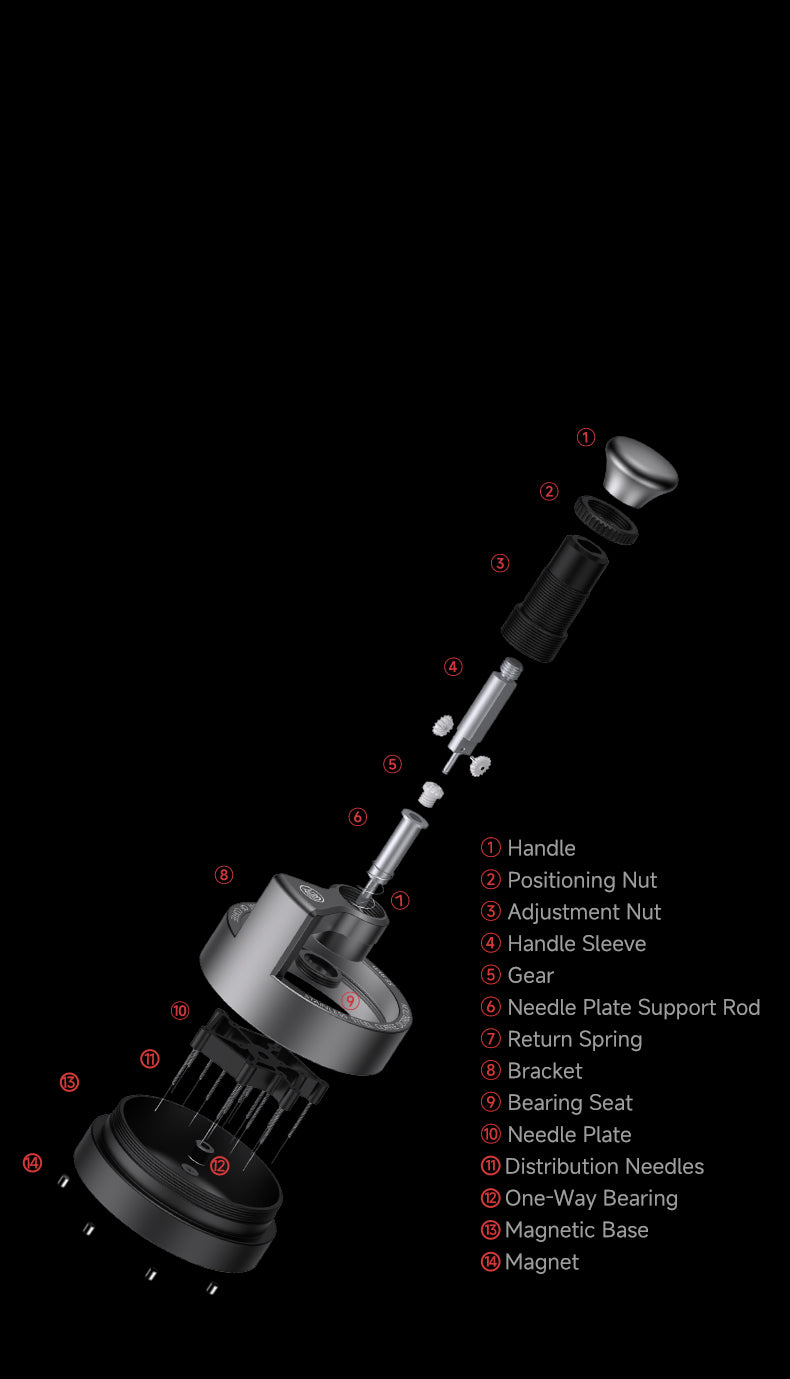 ZEROHERO Sword WDT Tool 2.0 — профессиональный инструмент для равномерного распределения молотого кофе в корзине 58 мм. Оснащён 13 ультратонкими иглами 0,25 мм, регулировкой глубины и магнитной базой для стабильной работы.