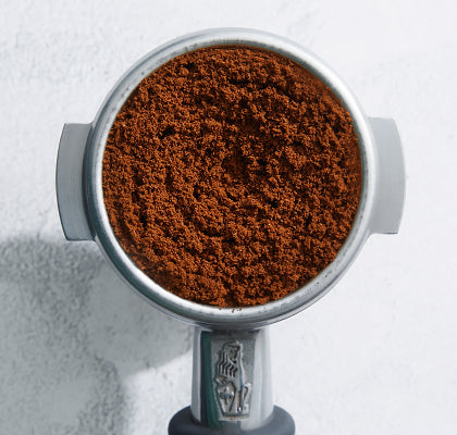 - Снимите инструмент — кофе готов к темперовке.