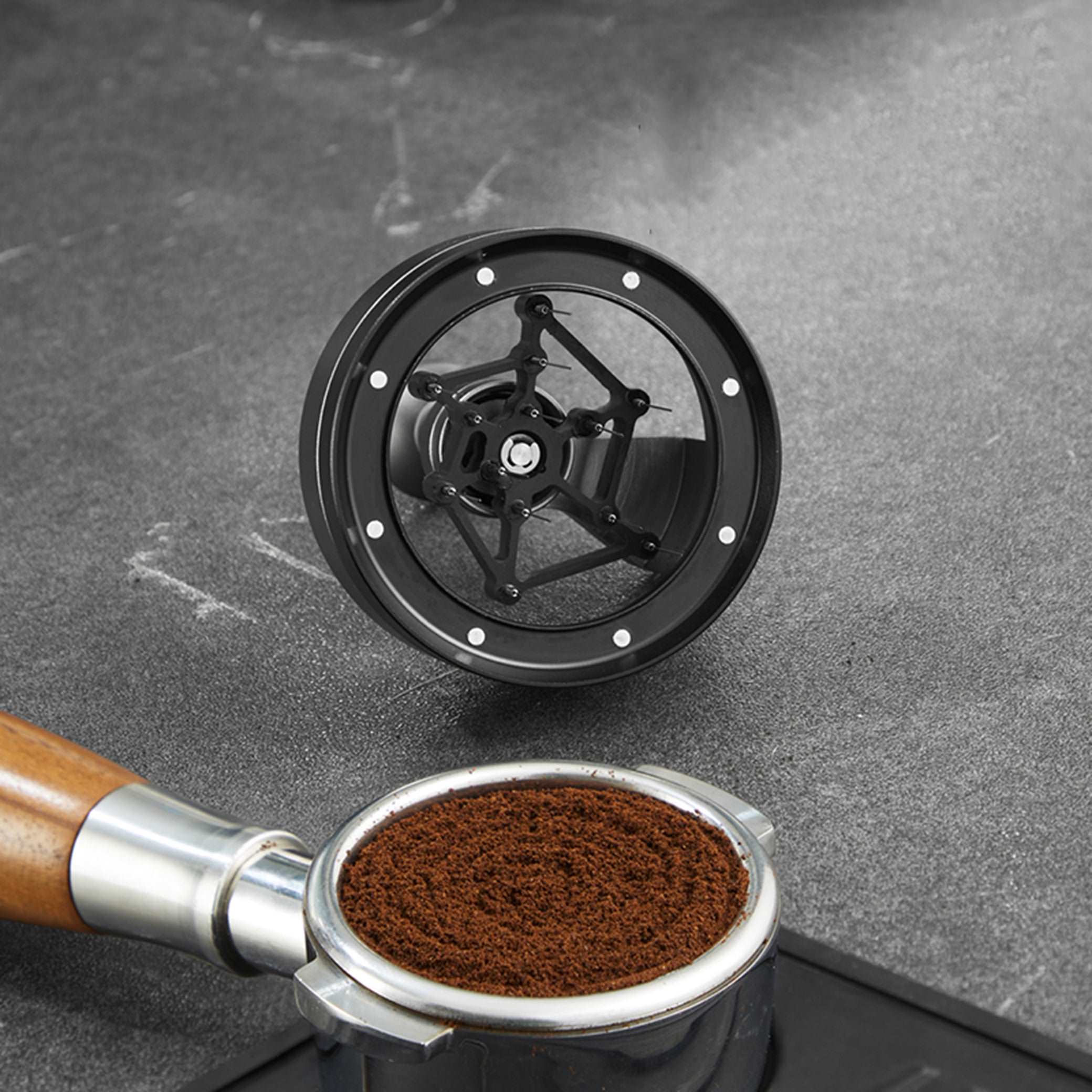 WDT (Weiss Distribution Technique) разрушает комки и выравнивает плотность таблетки перед темперовкой. Результат — более чистый вкус и стабильный шот.