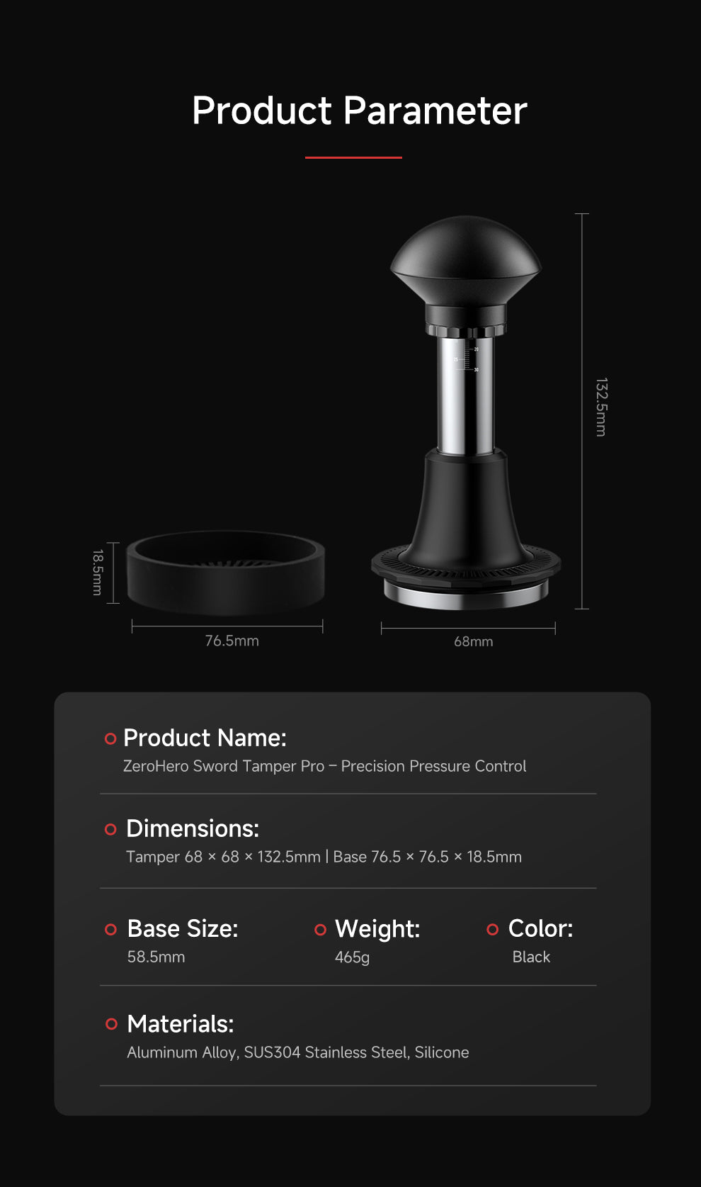 Калиброванный темпер zeroHero Sword Press — инструмент для точного и воспроизводимого трамбования эспрессо с возможностью регулировки усилия в диапазоне 15–30 lbs. Подходит для корзин диаметром 58 мм.