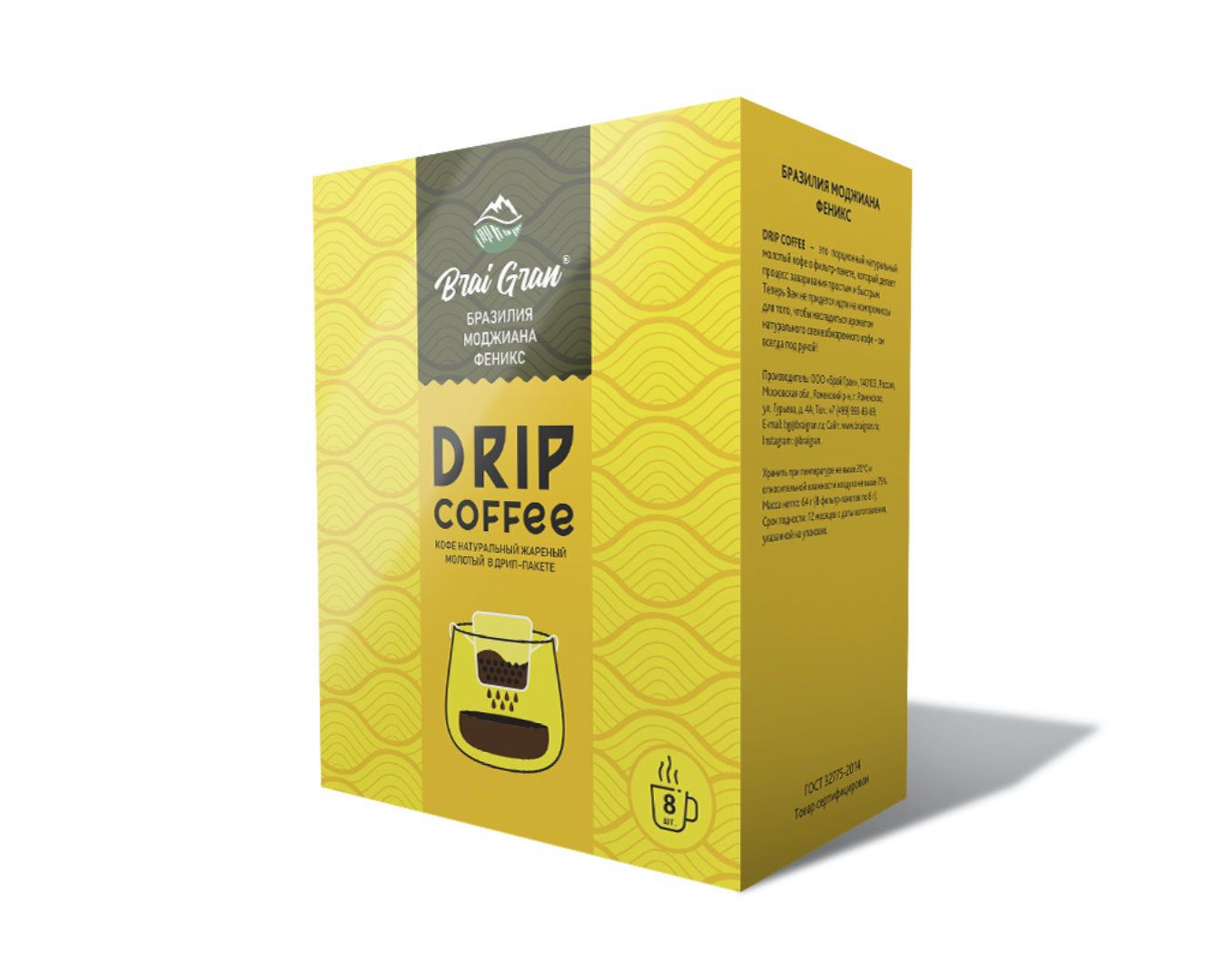 Бразилия Моджиана Феникс BRAI GRAN кофе молотый в ДРИП-ПАКЕТАХ, упак. 8 шт. по 8 г.