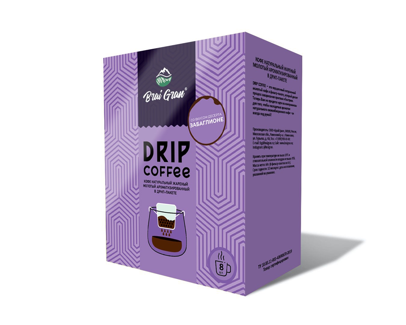 Забаглионе BRAI GRAN кофе молотый в ДРИП-ПАКЕТАХ, упак. 8 шт. по 8 г.