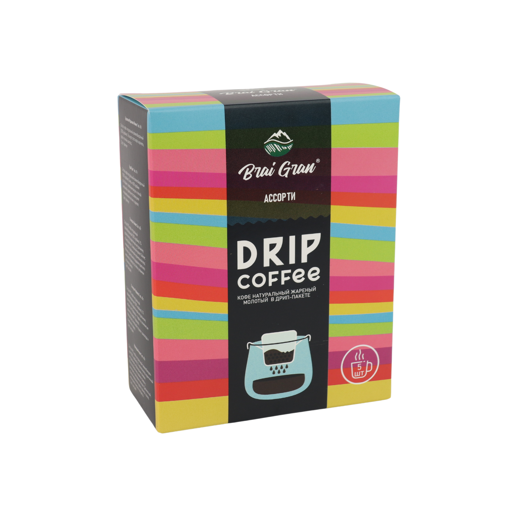 Ассорти BRAI GRAN кофе молотый в ДРИП-ПАКЕТАХ, упак. 5 шт. по 8 г.