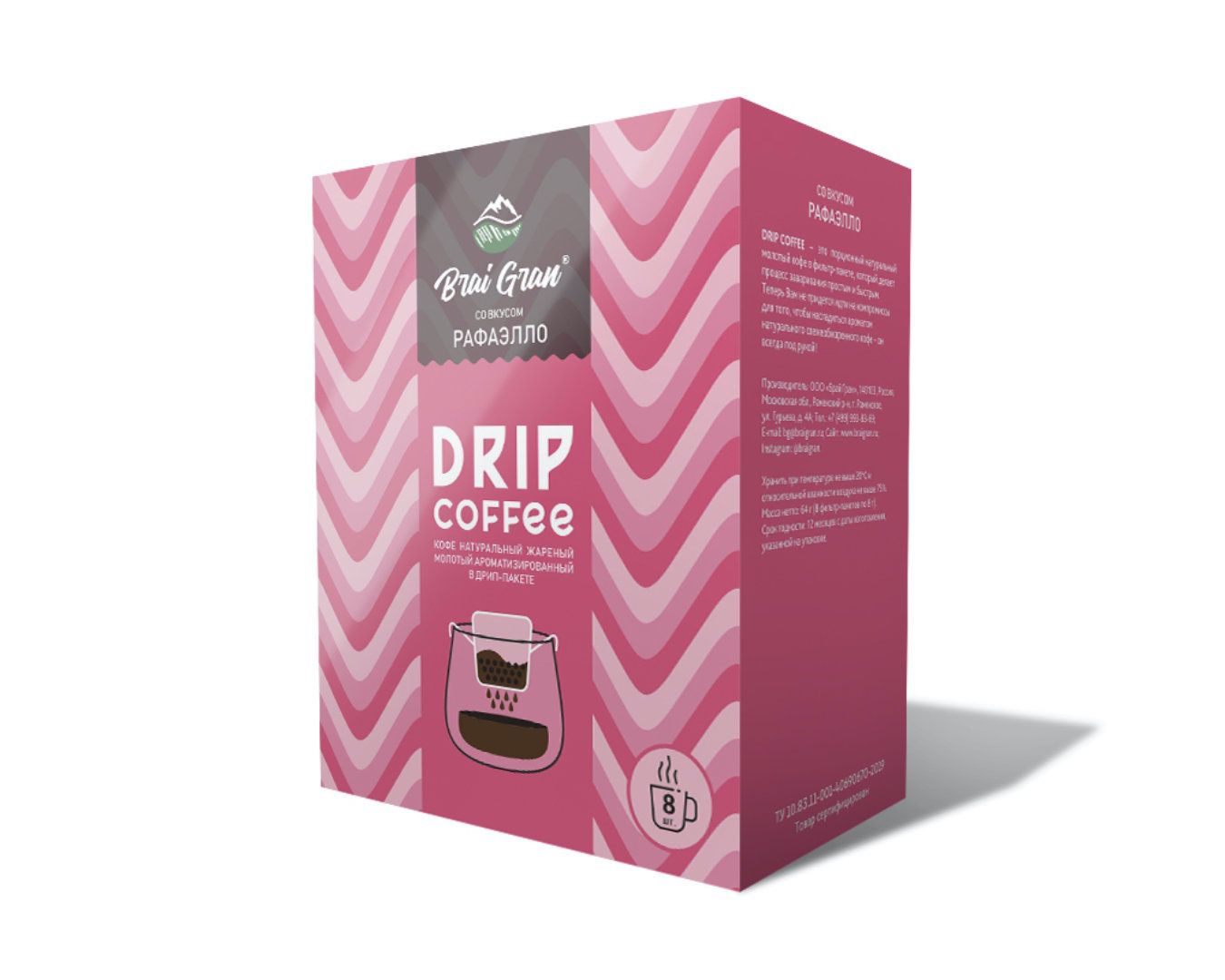 Рафаэлло BRAI GRAN кофе молотый в ДРИП-ПАКЕТАХ, упак. 8 шт. по 8 г.
