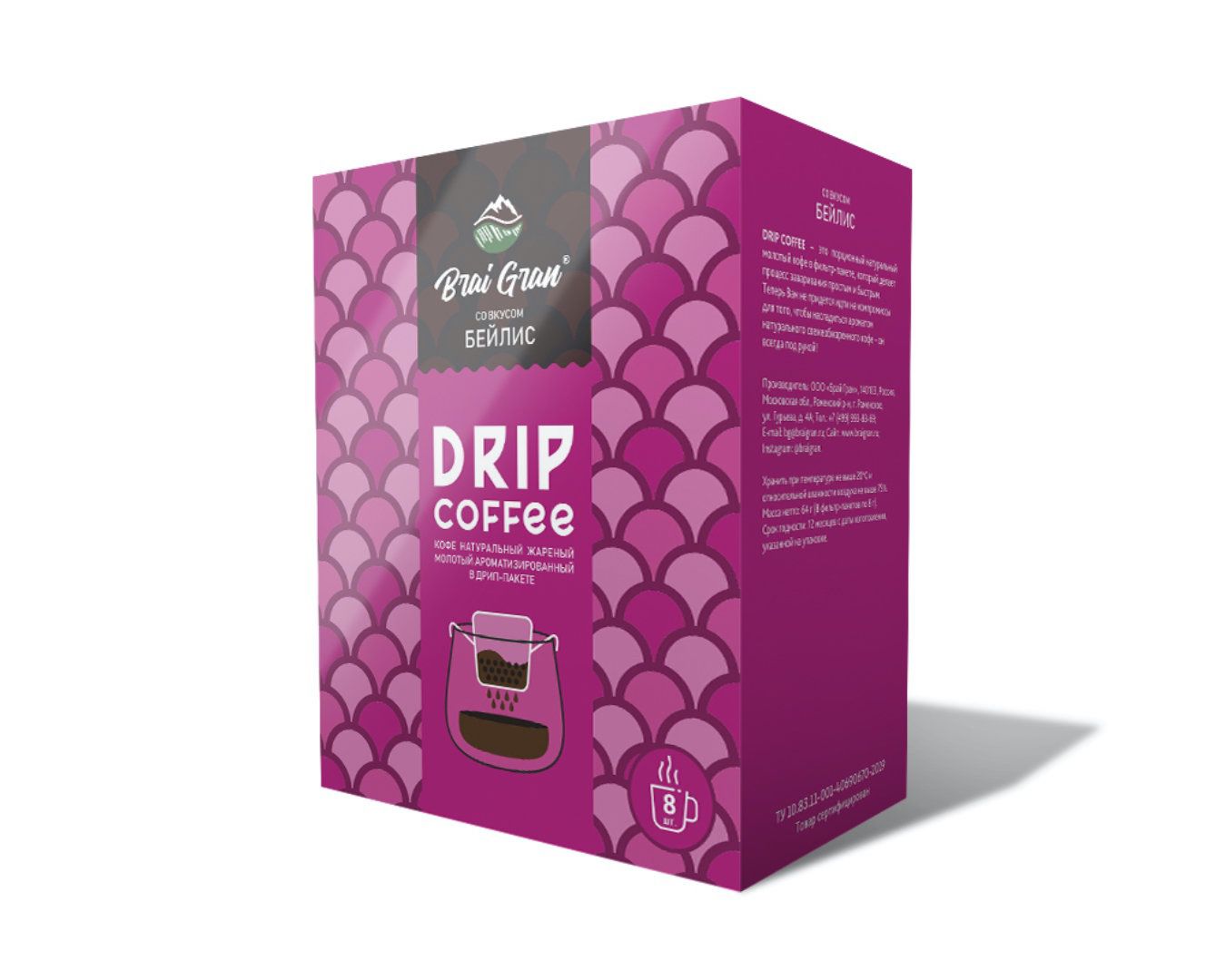 Бейлис BRAI GRAN кофе молотый в ДРИП-ПАКЕТАХ, упак. 8 шт. по 8 г.