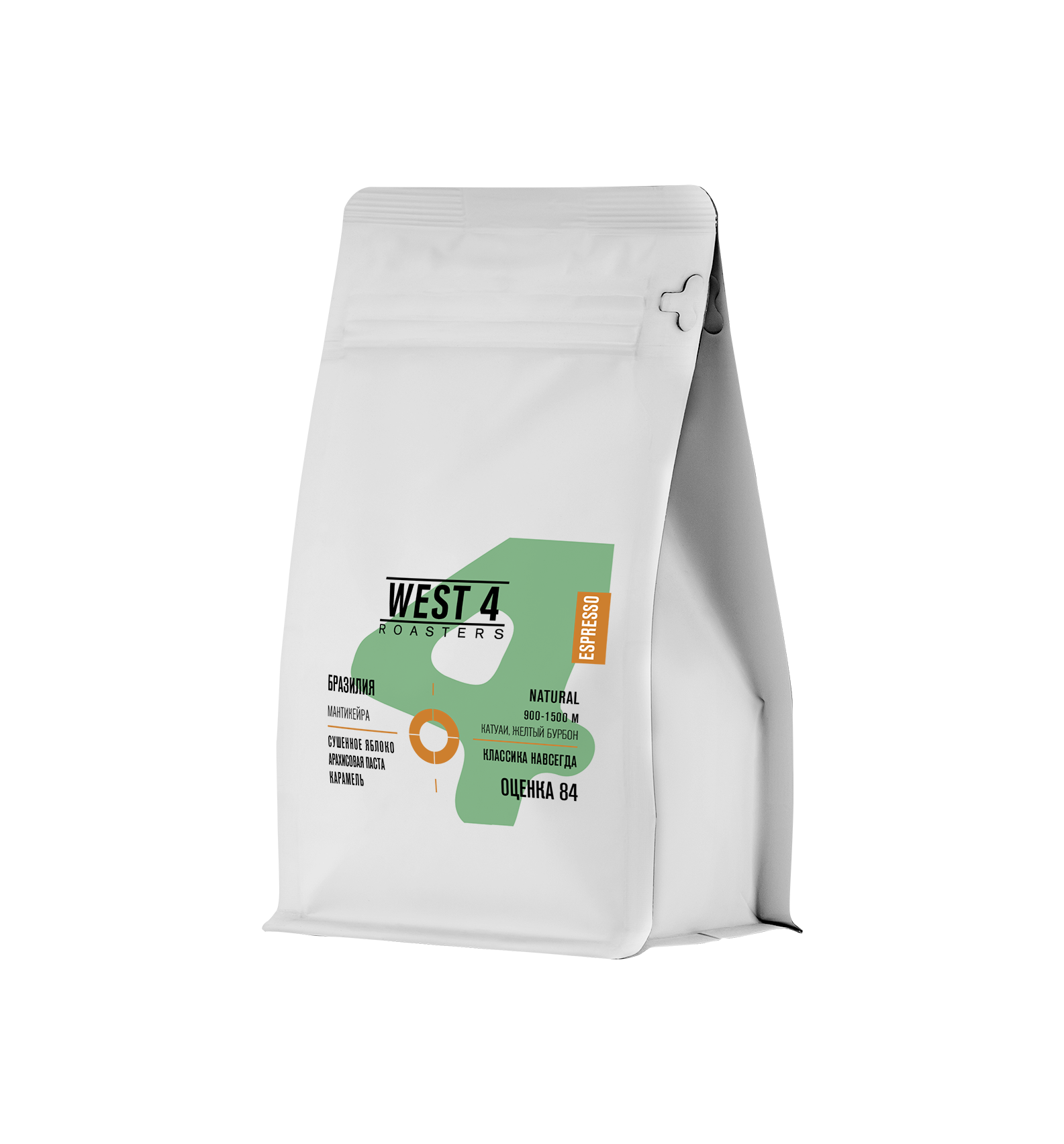 Бразилия Мантикейра WEST 4 ROASTERS (для эспрессо) кофе в зернах, упак. 200 г – это ваш билет в мир насыщенного орехового вкуса и бархатистой текстуры, идеально подходящий для приготовления эспрессо и напитков на его основе!