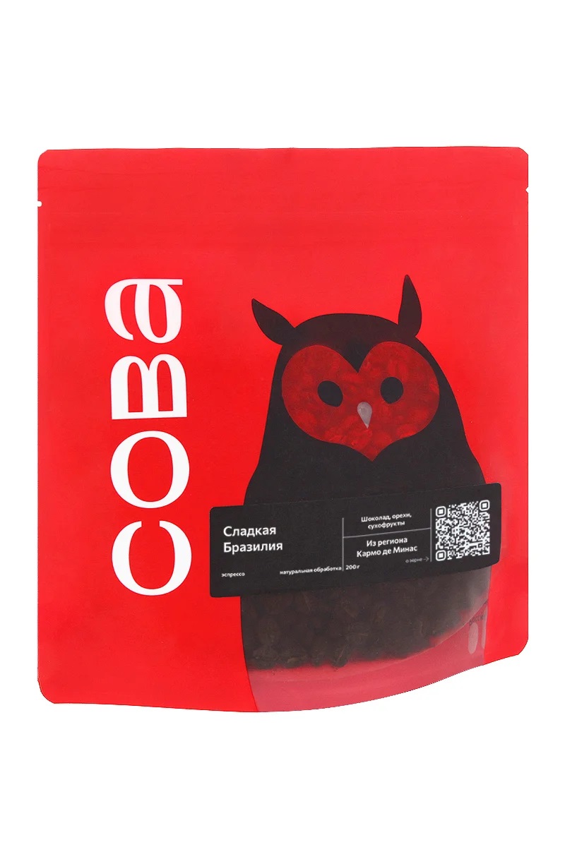 Сладкая Бразилия Кармо СОВА (для эспрессо) кофе в зернах, упак. 200 г.