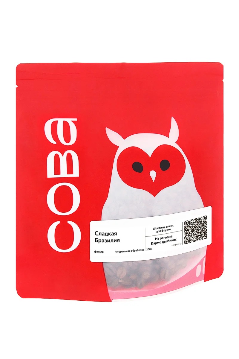 Сладкая Бразилия Кармо СОВА (под фильтр) кофе в зернах, упак. 200 г.