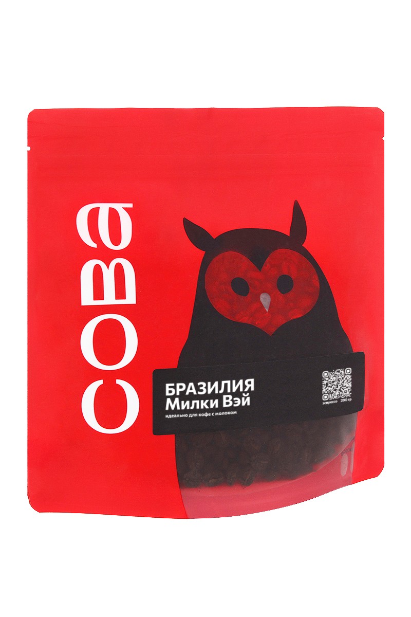 Бразилия Милки Вэй СОВА (для эспрессо) кофе в зернах, упак. 200 г.