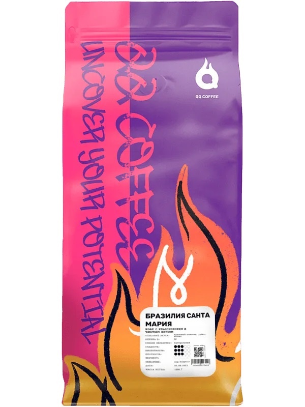 Бразилия Санта Мария QQ COFFEE (для эспрессо) кофе в зернах, упак. 1 кг.