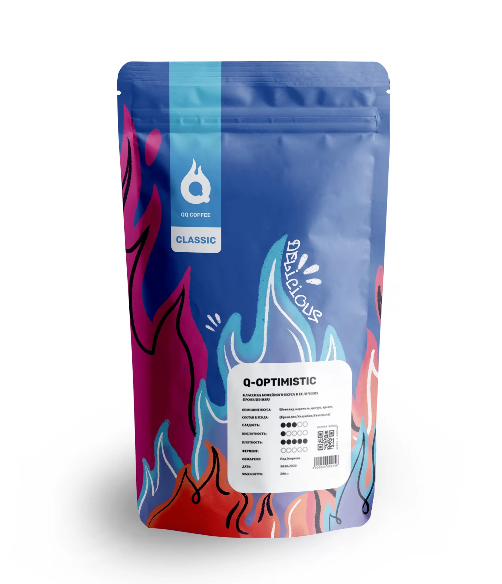 Q-Optimistic QQ COFFEE (для эспрессо) кофе в зернах, упак. 200 г.