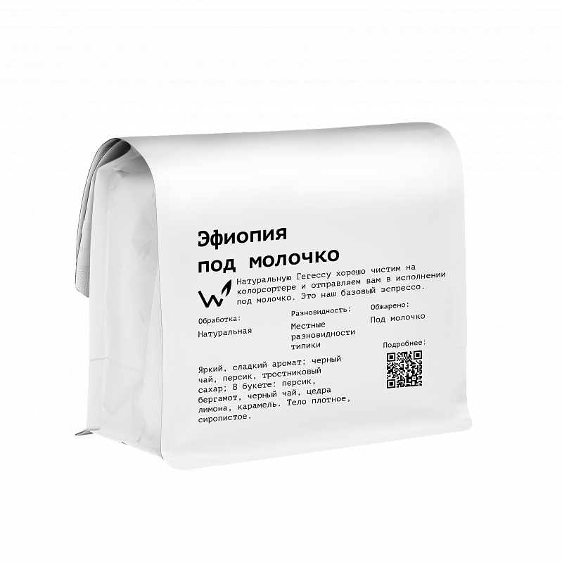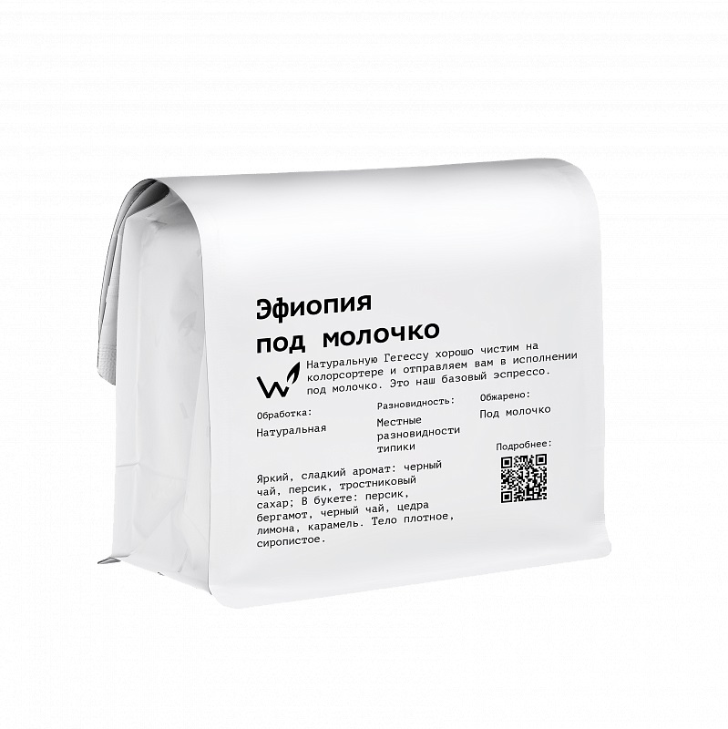 Эфиопия под молочко СВАРЩИЦА ЕКАТЕРИНА (для эспрессо) кофе в зернах, упак. 250 г.