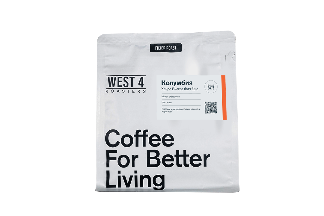 Колумбия Хайро Виегас батч брю WEST 4 ROASTERS (под фильтр) кофе в зернах, упак. 200 г.