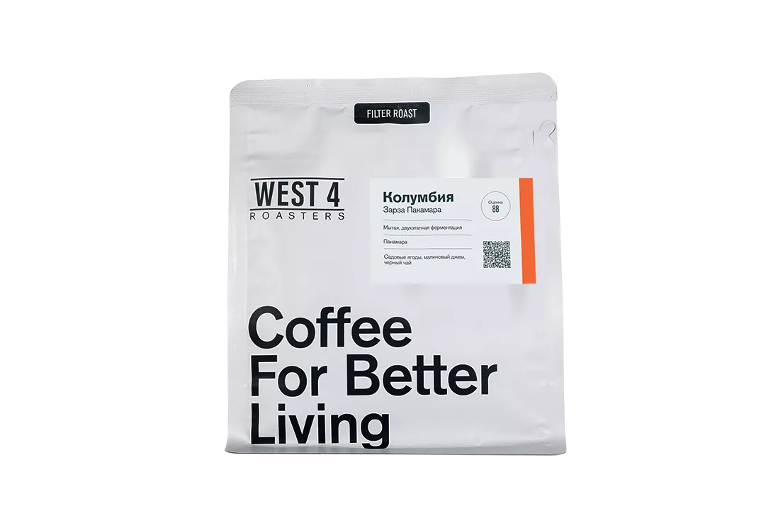 Колумбия Зарза Пакамара WEST 4 ROASTERS (под фильтр) кофе в зернах, упак. 200 г.