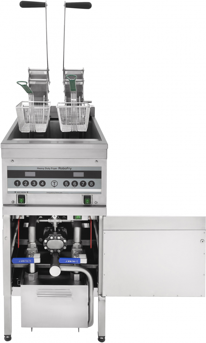 RoboLabs RoboFry ARF — профессиональная электрическая фритюрница с автоматической системой работы и фильтрацией масла, разработанная для интенсивной эксплуатации в ресторанах, фудкортах, кафе и заведениях быстрого питания.