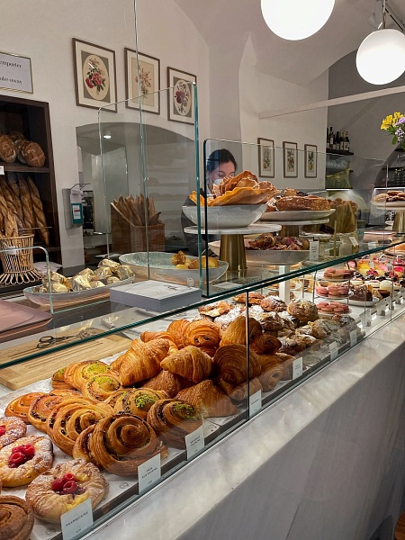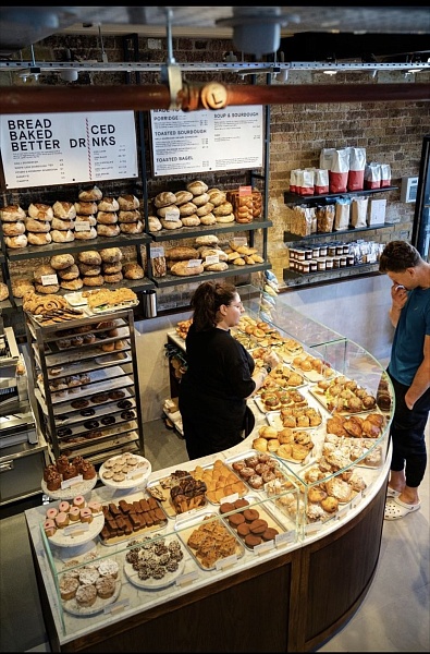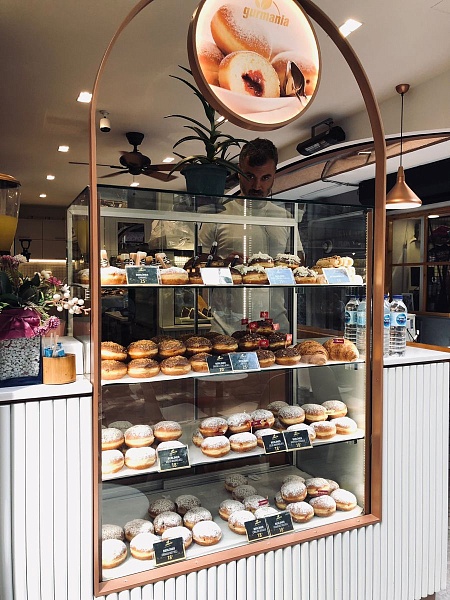 - Успешное решение: В Московском магазине Территория Кофе на ул. Правды 17/19 в кофе-бар «CoffeeState - Территория кофе» на барной стойке стоит нейтральная стеклянная витрина для круассанов и хлебо-булочных изделий, а охлаждаемые десерты и сэндвичи хранятся в небольшом холодильнике со стеклянной дверцей в баре на видном месте для гостей. Упаравляющий магазином Энвер Чарыев отмечает, что выпечка с этой открытой витрины даёт им 15% оборота в месяц. Они сделали упор на то, что в кофе-баре маленькая (площадь 4×2,5 м), и кондитерская витрина не вписывается в пространство. Поэтому прозрачная стеклянная витрина вертикального формата на стойке оказалась оптимальной: не занимает много места, а выкладывать можно всю дневную выпечку вверх стопкой. Гости видят круассаны, булочки – и охотно их покупают к кофе. При этом изделия не черствеют быстро, т.к. оборот высокий. Этот пример показывает, как нестандартный формат (вместо привычного холодильника – стеклянный бокс) подходит для крошечного кофебара и приносит пользу.