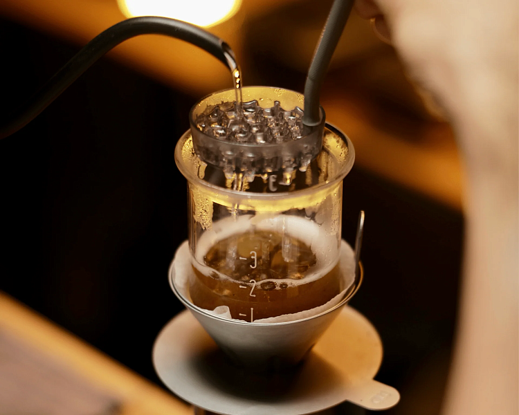 - Бариста-тренинги. Включить в программу тренинга блок о равномерном наливе воды. Например, учеников можно обучить правильному положению «ложки-капельницы» (Melodrip-подобной) или просто труни, объяснить, как влиять на вкусоаромат.