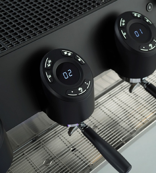 Органы управления D8 интуитивно понятны. Каждая группа оснащена блоком из шести программируемых кнопок для дозирования порций, плюс отдельная кнопка принудительной подачи и запуска очистки. Центральная кнопка с логотипом Sanremo служит для входа в меню настроек. Благодаря унифицированной системе, рецепт, запрограммированный на левой группе, автоматически копируется на остальные группы – это упрощает настройку и обеспечивает единообразие экстракции. Над каждой группой расположен цифровой таймер пролива, отсчитывающий время экстракции в секундах в реальном времени. Бариста сразу видит, сколько длится пролив – это помогает контролировать рецепты и качество напитка.