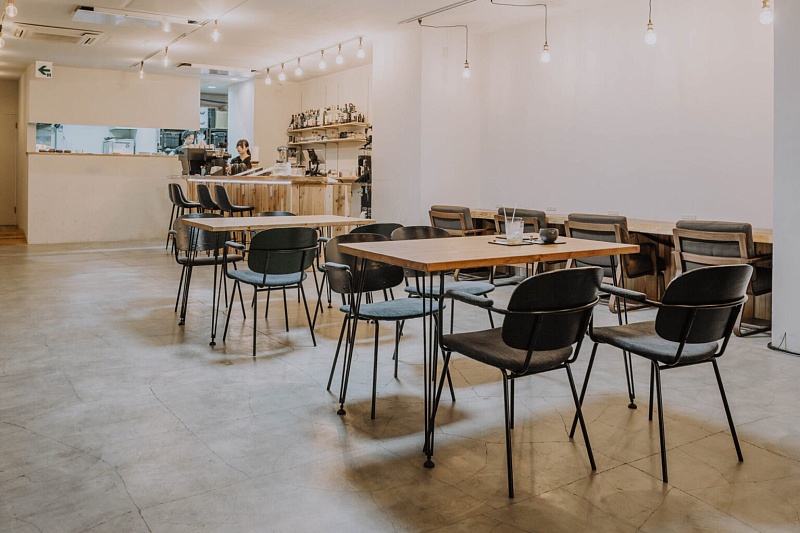- Japandi: Слияние японского минимализма и скандинавской функциональности. Для этого стиля характерно использование дубовой мебели, контраста натурального дерева с матовыми черными элементами (например, стеллажами или оборудованием) и теплого, целенаправленного освещения. В таких пространствах функциональные элементы (кофейное оборудование) часто выставляются напоказ, становясь частью дизайна.