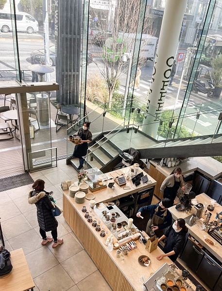 Koffee Mameya (основной магазин): Здесь акцент сделан на консультационном формате, где бариста помогает гостю подобрать идеальное зерно и метод приготовления, действуя как эксперт-сомелье.