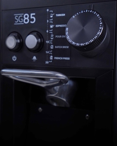 В серии SG85 используется увеличенный регулятор (King-size Dial), расположенный на боковой грани корпуса. Это улучшает эргономику и позволяет визуализировать настройки в широком диапазоне – от "Турки" до "Френч-пресса" в пределах одного полного оборота диска.