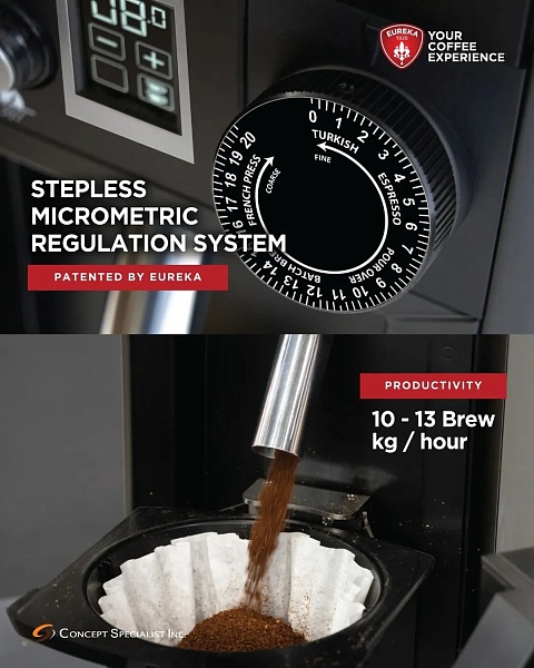 - Red Speed: Фирменная технология Eureka, представляющая собой специальное покрытие, обеспечивающее еще более высокую термостабильность и износостойкость. Жернова Red Speed рекомендуются для локаций с экстремальным потоком, так как они сохраняют геометрию режущей кромки максимально долго, обеспечивая стабильность вкусового профиля на протяжении месяцев интенсивной работы.